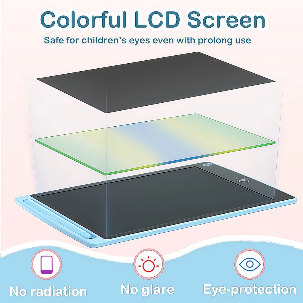 Tela de LCD e estrutura em ABS de 8.5/10/12 polegadas. É leve, fino e portátil. É fácil de transportar e não causa qualquer radiação que possa prejudicar os olhos. Super resistente, não quebra fácil em quedas ou batidas. O uso do produto é muito conveniente, não há necessidade de tinta. Gera economia de energia e evita desperdícios de recursos naturais.